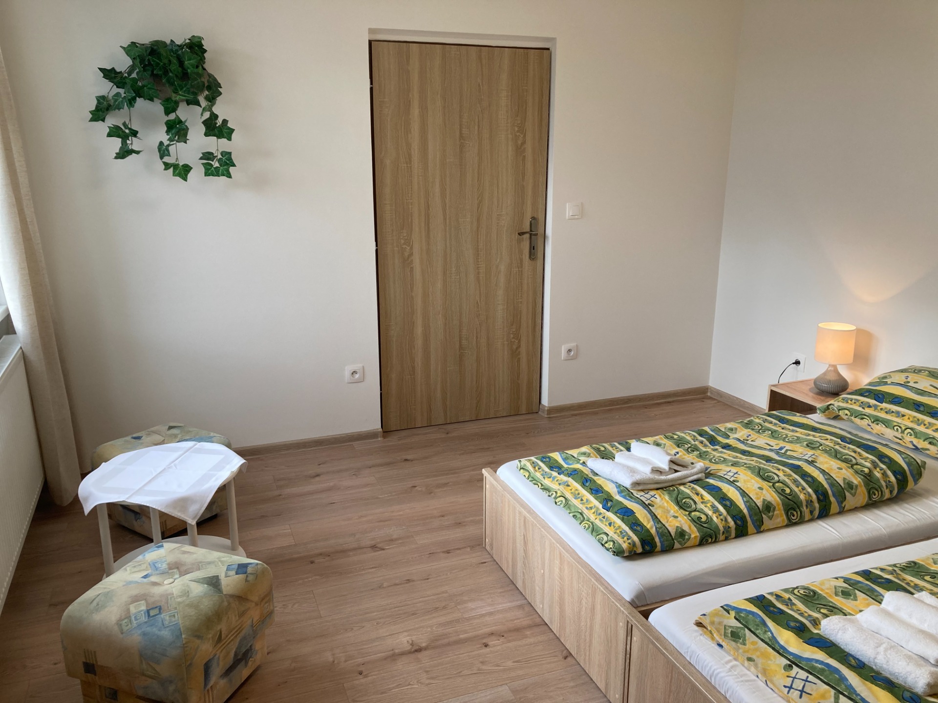 Dále můžete využít ubytování v přízemním bezbarierovém apartmánu, který se nachází hned ve vedlejším vchodu u naší ambulance. Součástí apartmánu je i zařízená kuchyňka. Fotky bezbarierového apartmánu vidíte níže.